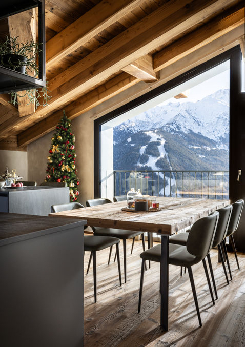 Il progetto ha previsto la progettazione degli interni di un'abitazione in montagna partendo dalla distribuzione interna per arrivare alla definizione di arredo, materiali ed illuminazione. Arredi dallo stile moderno ed essenziale dialogano con il legno rustico, in un'abitazione nella quale il paesaggio circostante è il protagonista assoluto