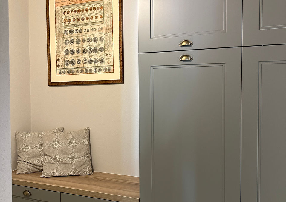 Il lavoro è stato finalizzato alla ristrutturazione di una residenza storica. Gli interventi maggiori sono stato finalizzati al recupero dei locali al pian terreno e alla creazione di un giardino nella corte prospiciente l'abitazione. Ai fini di questa ristrutturazione si sono resi necessari alcuni consolidamenti struttural (nello specifico la creazione di sottomurazioni in C.A.) e un adeguamento impiantistico. Nella zona della cucina, gli intonaci sono stati restaurati, mantenendo volutamente i segni dell'usura che ne dichiarano l'età. Nelle parti dove questi erano eccessivamente ammalorati si è deciso rimuoverli e riportare la pietra a vista, enfatizzandone la texture con l'inserimento di strisce led. La resina a pavimento e la cucina con ante in vetro satinato e gole in acciaio creano un forte contrasto antico-moderno. Le zone dell'ingresso e del salotto sono state pavimentate con cotto stonalizzato di formato 20x20 (dimensione utilizzata tipicamente in Lombardia). Nella zona del soggiorno è stato demolito il controsoffitto intonacato per riportare alla luce le travi in legno opportunamente restaurate. La sala da pranzo e il bagno trovano posto in un ambiente prima utilizzato come cantina e serra. Per ricordare questa funzione la sala da pranzo è caratterizzata da un pavimento in cemento grezzo e dal verde, che domina attraverso il colore delle pareti e la presenza abbondante di vegetazione. Nel bagno la vasca freestanding e i sanitari opachi dal design minimale dialogano con i lavabi in pietra recuperati dal giardino e col basamento in lastre verdi locali che ospita la vasca.